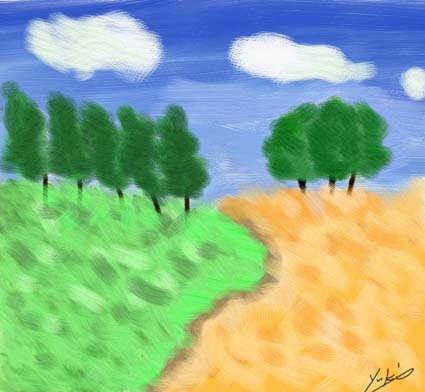 絵を描くというと、このごろこんな田園風景ばかり描いてます。 心のどこかで、のんびり空を眺めていたい、そんなことを考えているからかも知れませんね。