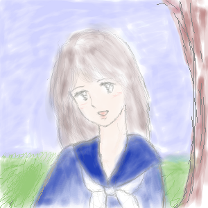 ほのぼのした気分で描いた感ありありの女の子。ペンタブレットが行方不明になりマウスで頑張ったもの。