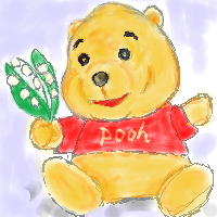 すずらんで有名な滝野へ出かける記念に?プーさんに、すずらんを持たせてみました。