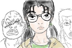 無事発見した記念に、フリーハンドな醍醐味を味わいつつおさげの女の子を描いてみる。
