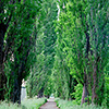 イチョウ並木やポプラ、白樺などきれいな並木の風景。